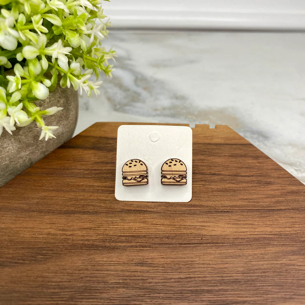 This adorable hamburger pouch bundled with a mega pop burger & a mega pop fries keychains and hamburger earring studs!!