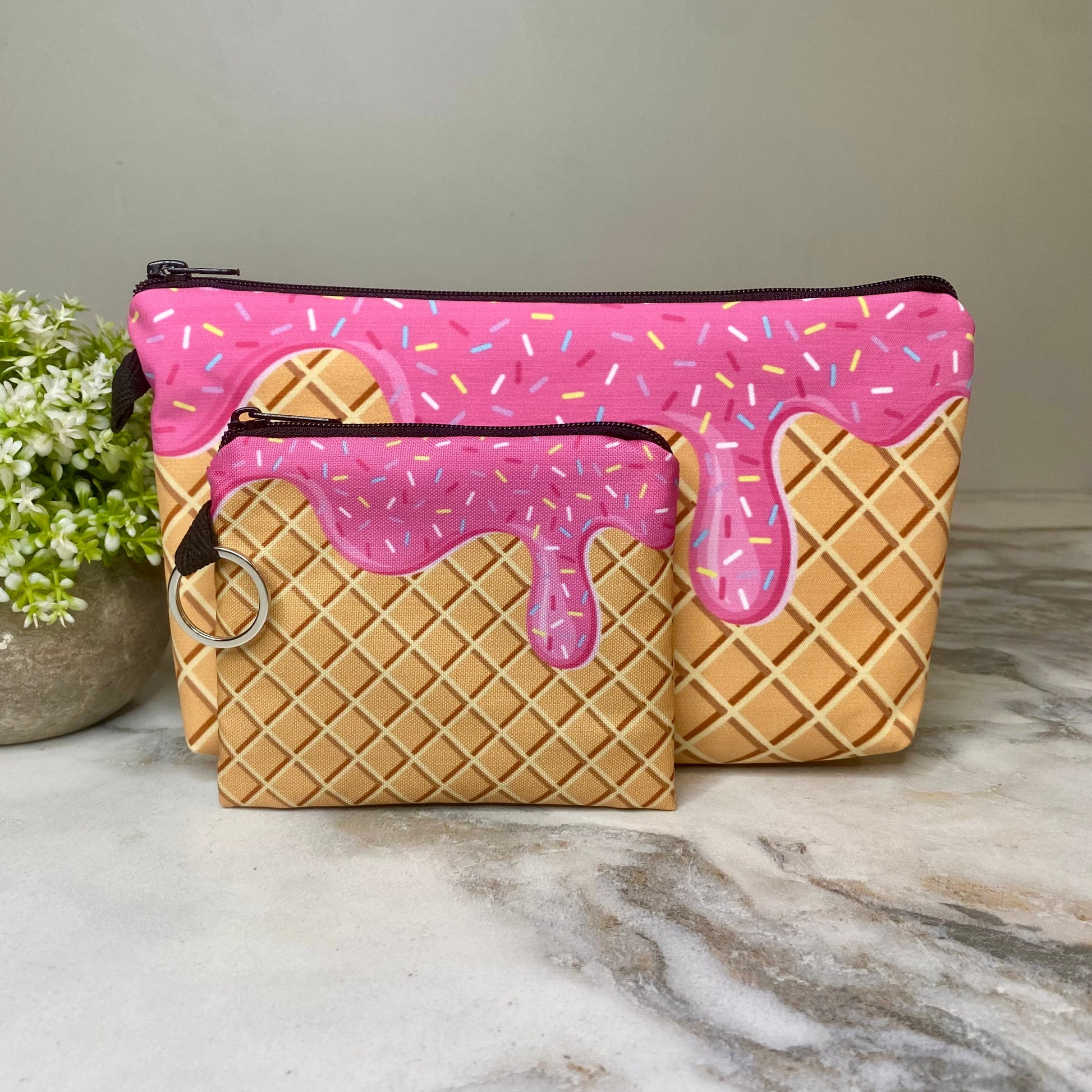 Pouch & Mini Pouch Bundled Set - Ice Cream Cone Hot Pink