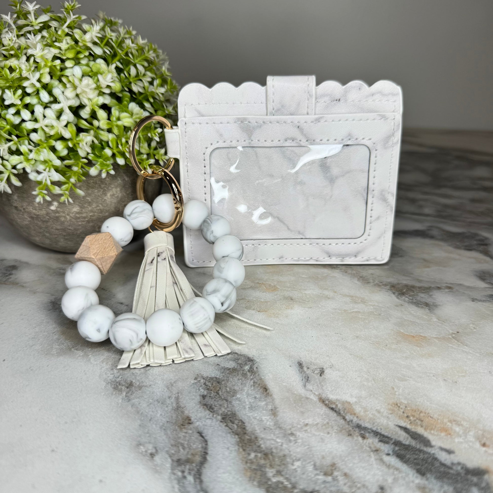 Silicone Bracelet Keychain with Scalloped Card Holder - Marble