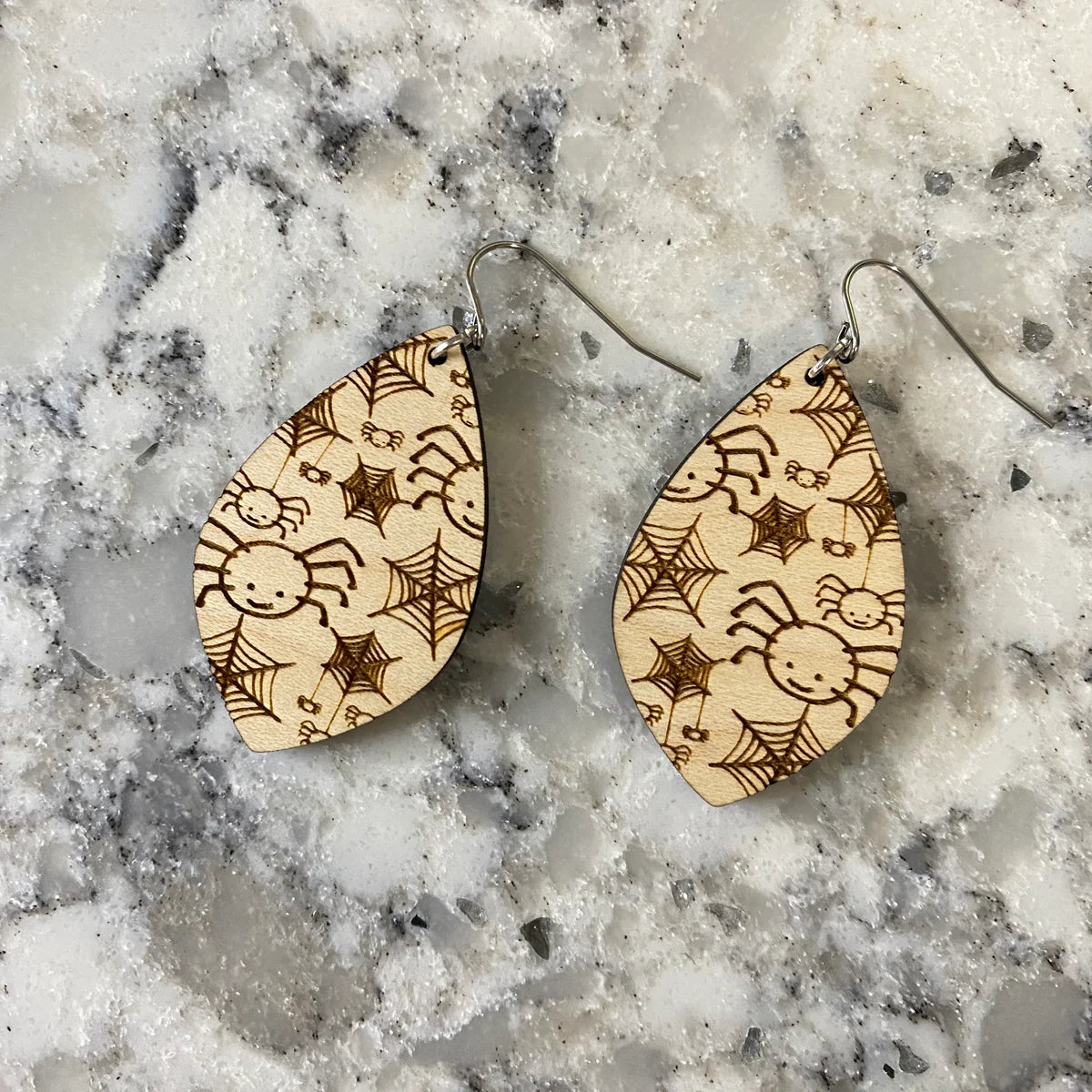 Wooden Specialty Drop Earrings - Halloween Spiders